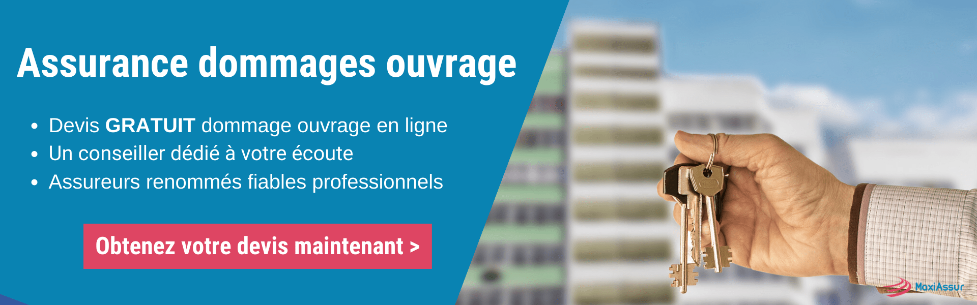 Assurance Dommage Ouvrage pour les bâtiments neufs. Selon larticle L242-1 du Code des assurances la souscription à lassurance doit se faire avant louverture de chantier. En effet lorsque des travaux sont réalisés dans un immeuble avec plusieurs copropriétaires les risques de dommages de nature décennale sont tous aussi importants que dans une maison individuelle.