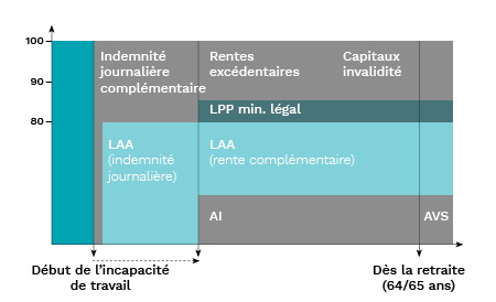 Assurance perte de salaire en cas de maladie. 67 à 77 LAMal ou à la Loi fédérale sur les contrats dassurance LCA. De ce fait les impacts sont conséquents en cas de perte de revenus suite à un accident ou une maladie. Découvrez les conditions et montants des compléments de salaire et autre type de revenus dans le tableau ci-dessous.