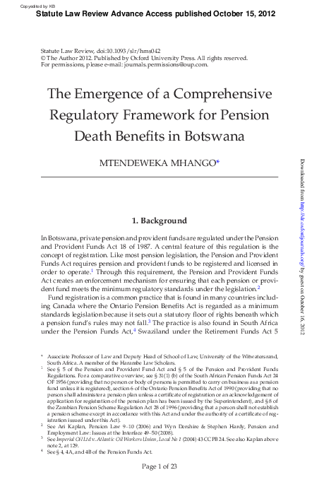 Pdf The Emergence Of A Comprehensive Regulatory Framework For Pension Death Benefits In Botswana Mtendeweka Mhango Academia Edu