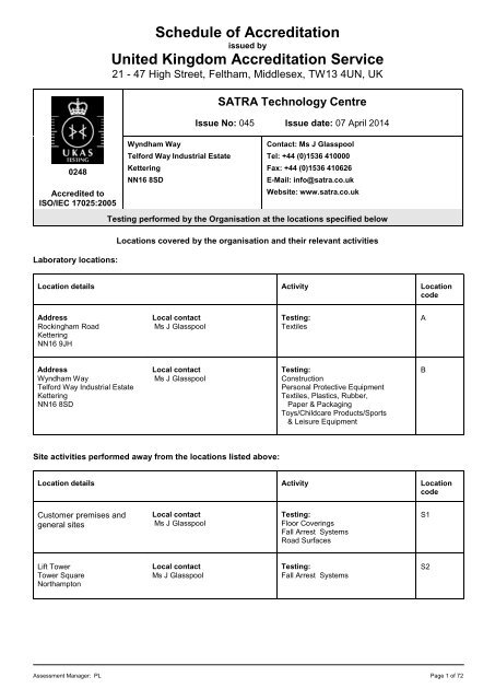 Search and find company accounts information for SATRA QUALITY ASSURANCE LIMITED WYNDHAM WAY TELFORD WAY KETTERING NORTHANTS NN16 8SD. Careful checking of all the products is performed daily to ensure the consistency of production and observance of quality standards. SATRA is providing top-notch services in the areas of Highway Design Supervision Project Management Implementation Quality Assurance Studies Traffic and Transportation Studies Information Technology Software Development and Implementation Health Care Services and Geo-Spatial.